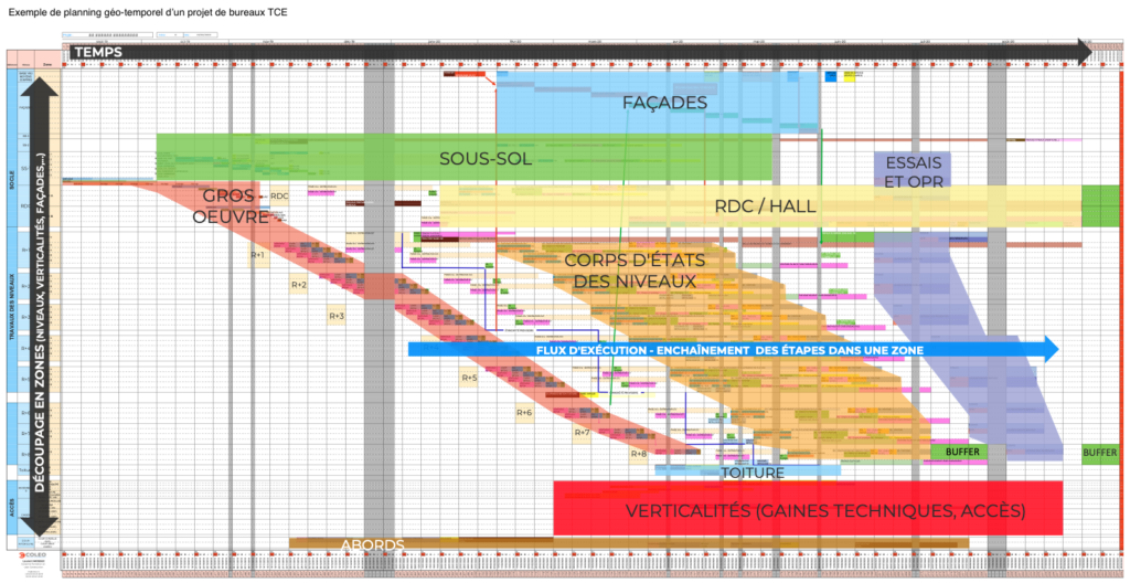 Le temps ne suffit pas pour piloter le TCE. Il faut intégrer la dimension spatiale : saturation de zones, cheminements provisoires, stockage, circulation verticale, protection de supports sensibles, coactivité sous plafond ou en façade. Cette lecture “espace + temps” permet d’éviter la congestion et d’améliorer la productivité des entreprises. Sans elle, un planning peut paraître parfait sur le papier tout en étant impraticable sur le terrain.
